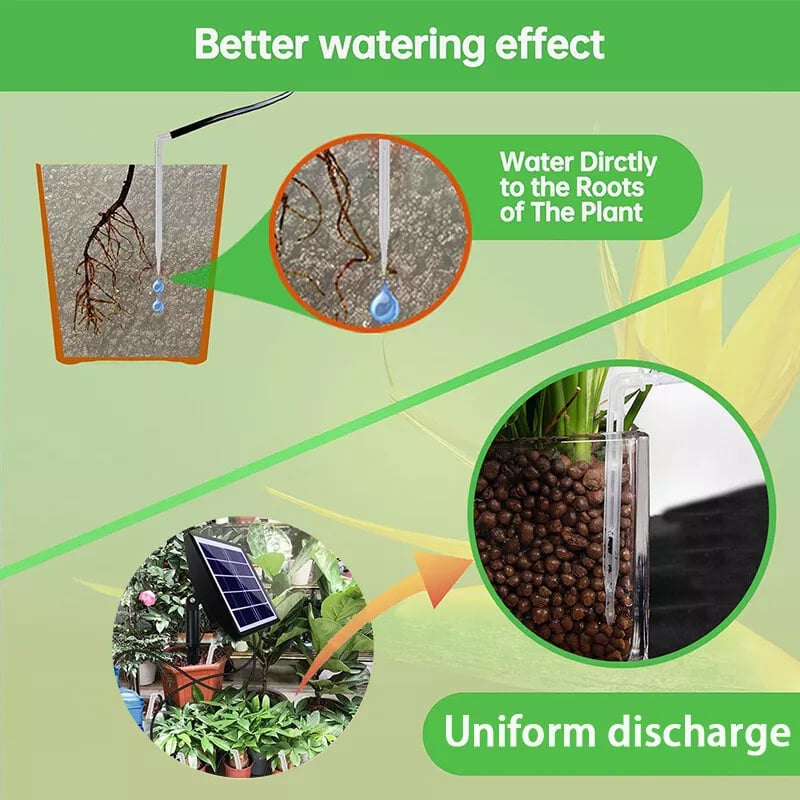 💦Keep your plants thriving effortlessly with our solar-powered drip irrigation system. Designed for both indoor and outdoor use, this system ensures your plants receive consistent care, even when you're away.